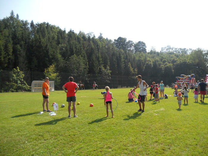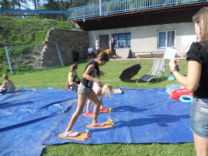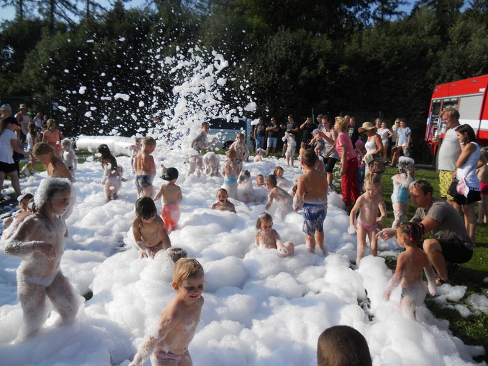 Letošní ukončení prázdnin se vydařilo, přálo nám počasí a byl připraven bohatý program pro děti všech věkový kategorií. Ukončení prázdnin bylo zahájeno fotbálkem. Odpolední soutěží na 10 stanovištích se zúčastnilo 120 dětí, u každého stanoviště dostaly za splnění úkolu malou odměnu. Po úspěšném zvládnutí všech úkolů byly děti odměněny velkými omalovánkami a pexesem. K radosti dětí přispěly i dva skákací hrady, ukázka agility (sport se psy) a projížďka na koních. Vzhledem k velmi teplému počasí udělali dětem obrovskou radost místní hasiči, kteří připravili pěnu, ve které se vyřádily všechny děti i s některými rodiči a prarodiči. K doplnění energie a pitného režimu bylo připraveno bohaté občerstvení. O hudbu k tanci i poslechu se postaral DJ Petr Šindler.