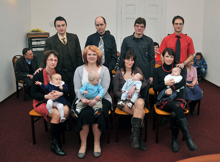 Děti dostaly zlatý přívěšek s monogramem jména, maminky kytičku a dětem i rodičům popřál starosta města Karel Galas hodně zdraví, štěstí a rodinné pohody.