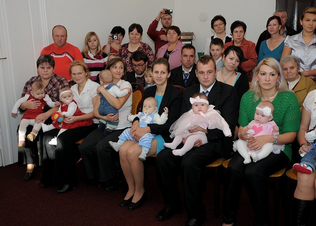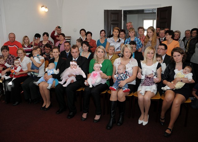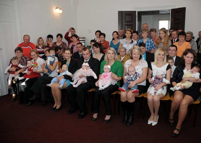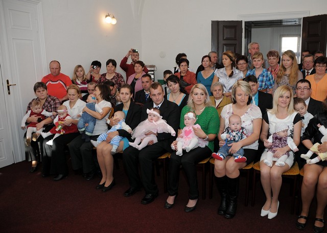 V sobotu 19. října se v potštátské obřadní síni slavnostně vítali noví občánci města. Rodiče společně s dětmi, dědečky a babičkami zaplnili obřadní síň až k prasknutí. Návštěvnost v tak velkém počtu už dlouho nepamatujeme. Po krátkém pásmu písniček a básniček dětí z mateřské školy nastoupil slavnostní projev místostarostky města paní Aleny Otáhalové. Popřála všem hlavně hodně zdraví, štěstí a rodinné pohody. Celkem jsme přivítali devět miminek, která dostala pamětní listy a zlaté přívěsky s monogramem svého jména. Maminky byly odměněny kytičkou. Všem rodinám přejeme hodně radosti.