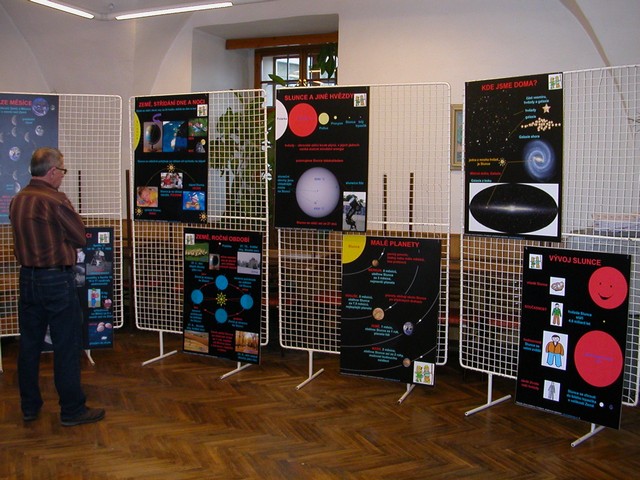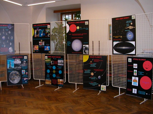 První část výstavy seznamovala nejmladší děti (4-10 let) s místem, kde mají svůj domov, tedy s polohou Slunce v Galaxii. Další panely je seznámily se změnou velikosti Slunce v průběhu jeho existence a s porovnáním velikostí některých hvězd se Sluncem. Nejobsáhlejší část výstavy byla věnována planetám naší sluneční soustavy, především Zemi. Názorně byl ukázán princip střídání dne a noci i ročních období. Objasněno bylo také střídání fází měsíce, připomenuta byla i přistání lidí na Měsíci. Zmíněna dále byla i menší tělesa sluneční soustavy jako jsou trpasličí planety, planetky, meteory a komety. K neposledním patřilo i zobrazení souhvězdí viditelných po celý rok a dále typická souhvězdí pro každé roční období.