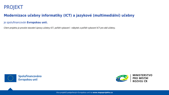 Úvod > Informace > Realizace projektů > Modernizace učebny informatiky (ICT) a jazykové ( multimediální) učebny