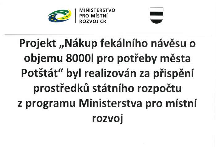 Úvod > Informace > Realizace projektů > Nákup fekálního návěsu o objemu 8000l pro potřeby města Potštát